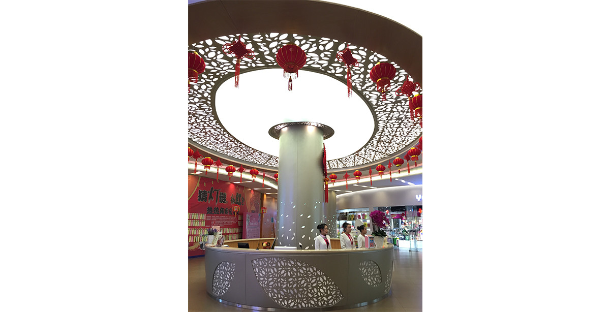 深圳北站東延平臺商業(yè)項目裝飾裝修工程位于深圳市龍華新區(qū),設(shè)計理念為時尚與綠。將空間賦予生機盎然的綠色情調(diào),采用葉片狀的造型天花、墻面、柱體配合燈具燈光效果達到綠的主題,時尚與環(huán)保融為一體。